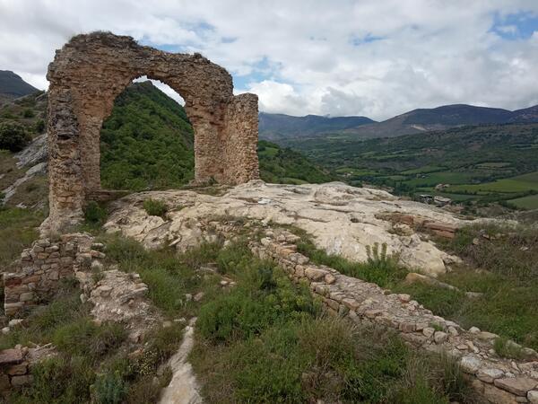 La angosta subida empedrada que da acceso al alto de la peña comprueba la dificultad de tomar aquella posición. Esta ubicación dotó al Castillo de Arén de un privilegiado estado y fue centro de numerosas etapas de Ribagorza desde su origen en el siglo IX. Realmente, en este lugar se alzaron dos construcciones, distando entre ambas doscientos años, adaptándose la segunda a un espacio mayor.