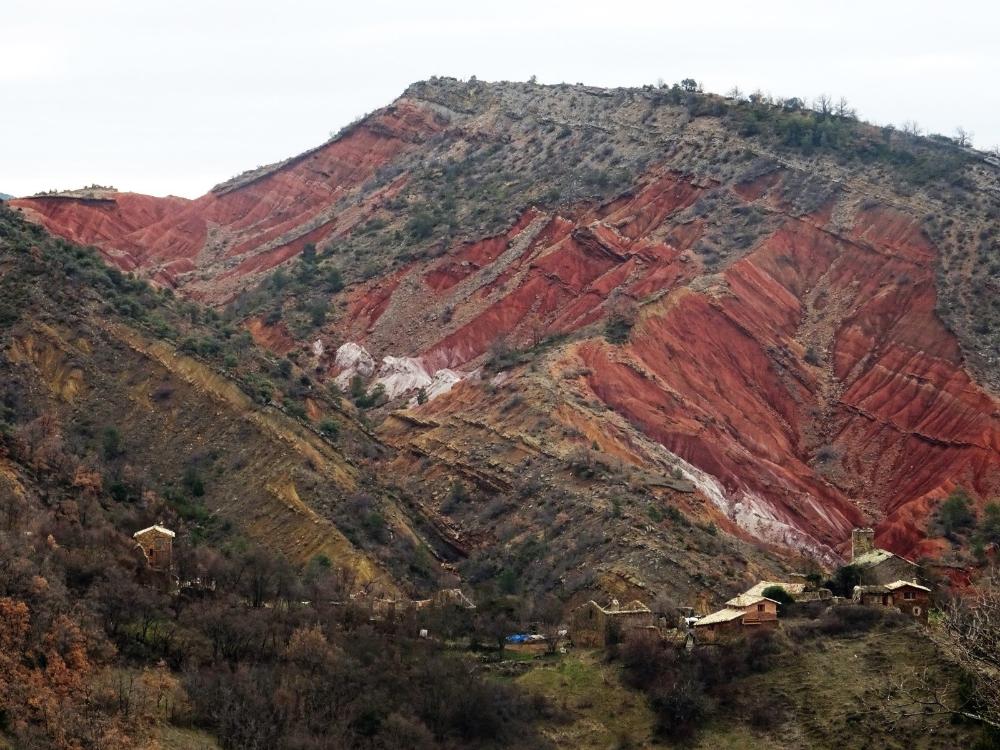 Población recuperada por nuevos habitantes ubicada en un vistoso barranco de arcillas rojizas entre dos montículos de la Sierra de Berganuy. El núcleo principal, dado que existen dos agrupaciones de hogares, se extiende alrededor de la antigua iglesia parroquial, datada en el siglo XVIII.